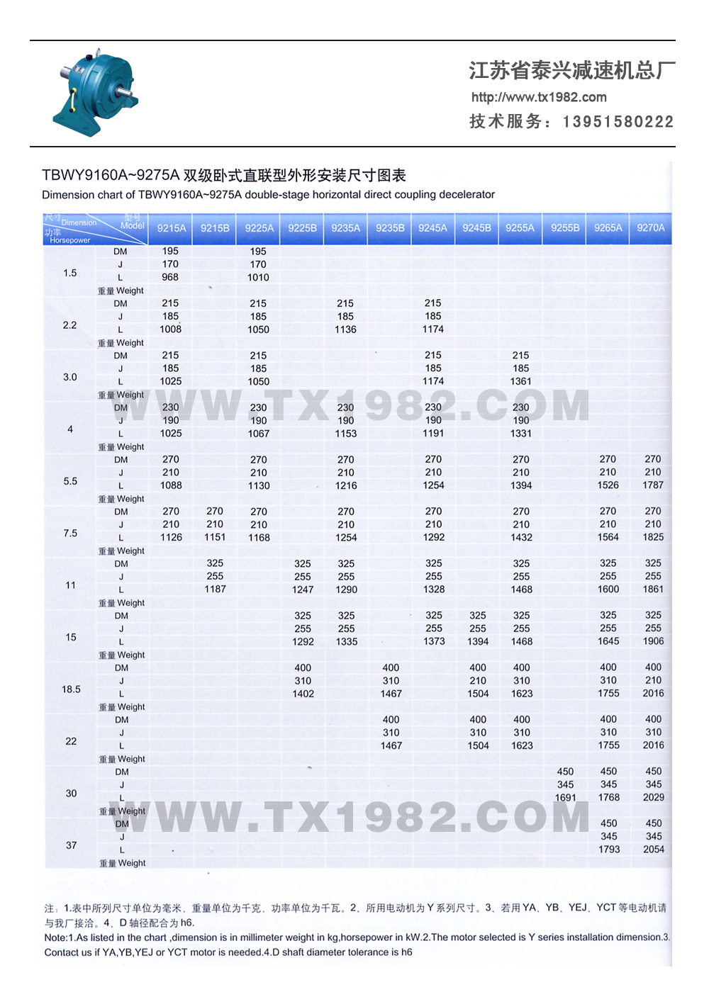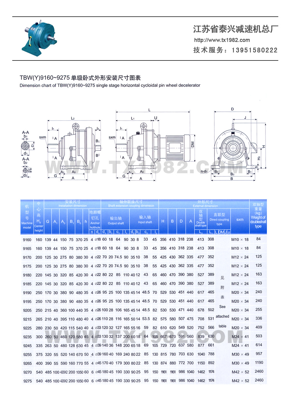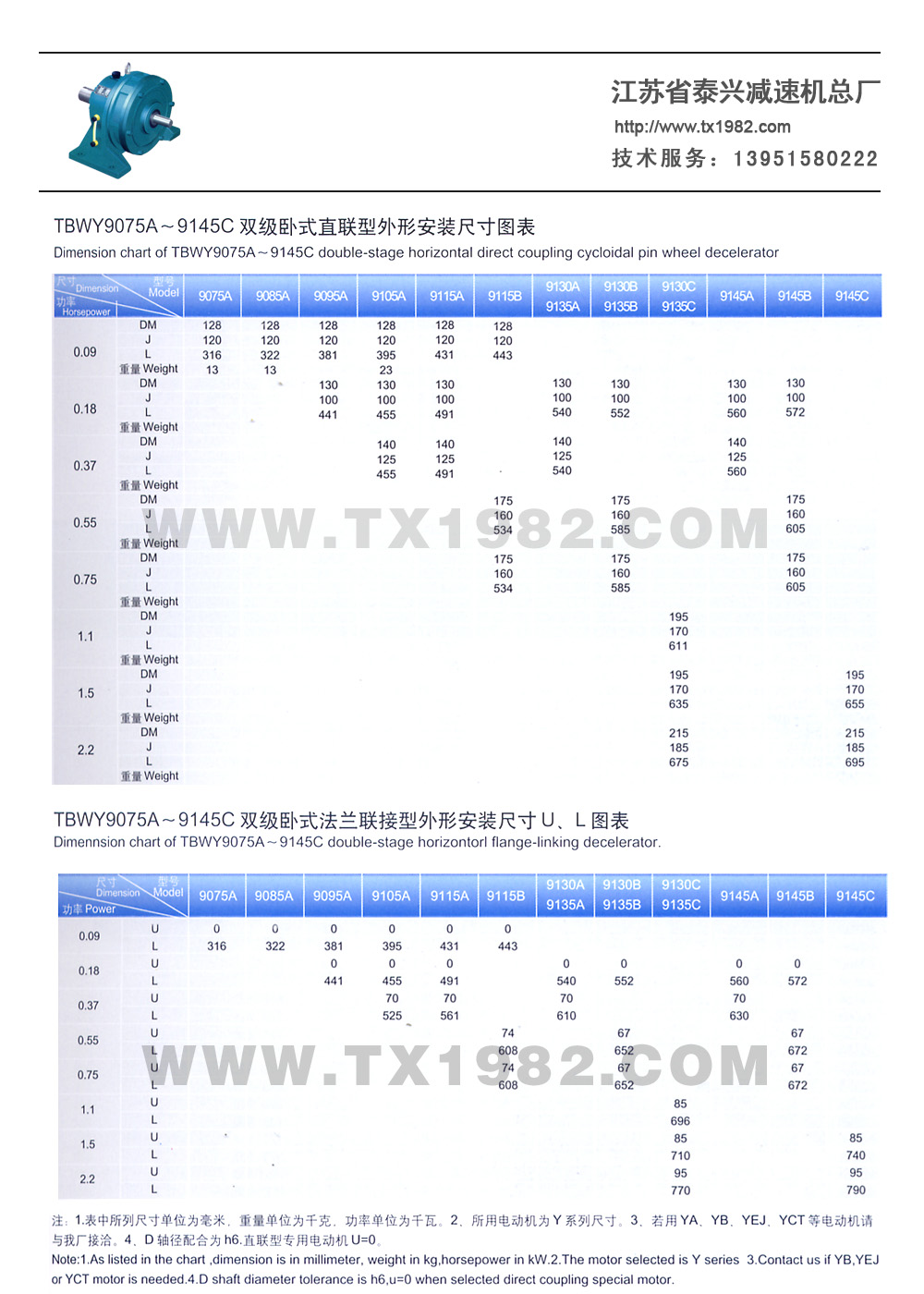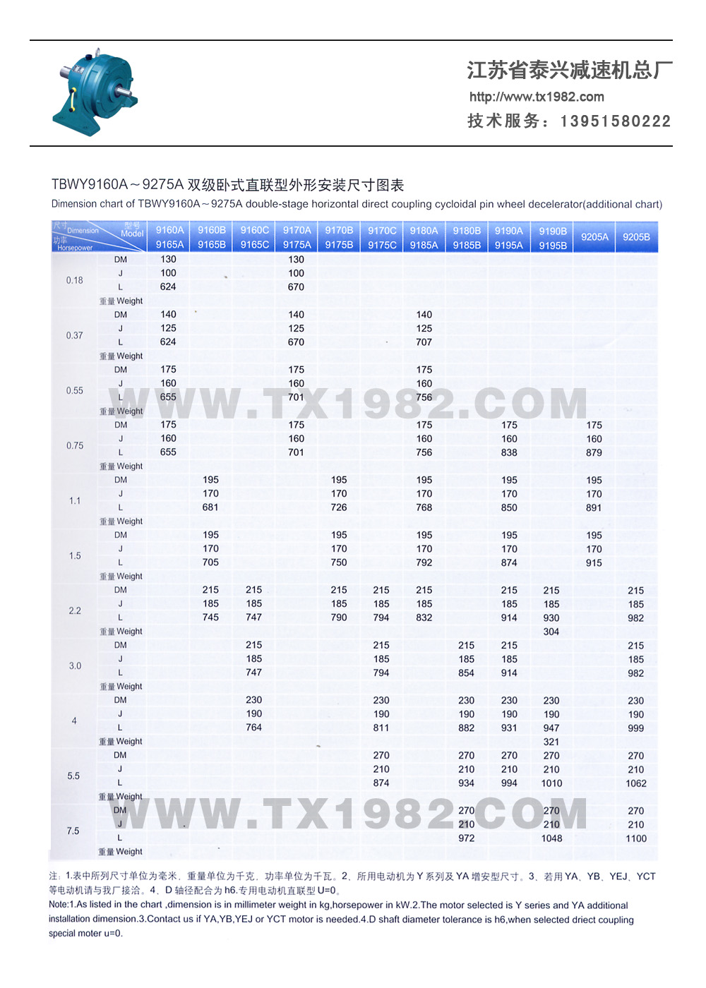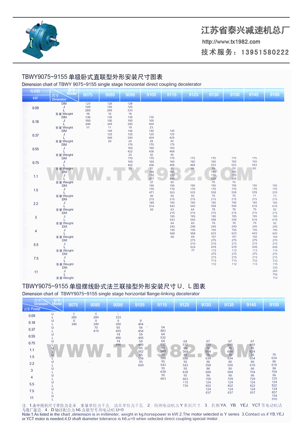 TBWY擺線針輪減速機為專用異步電機直聯(lián)型、腳板式臥式安裝