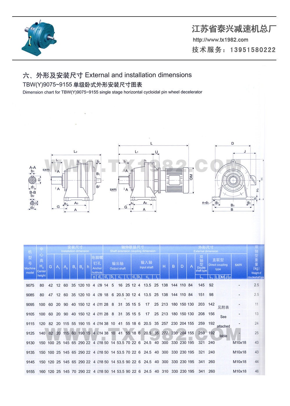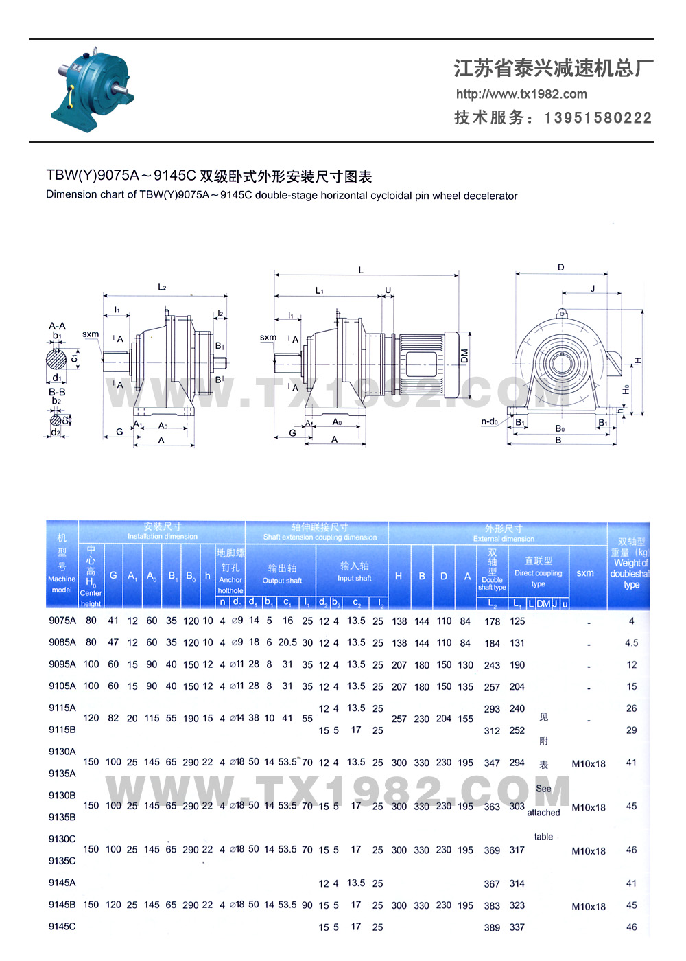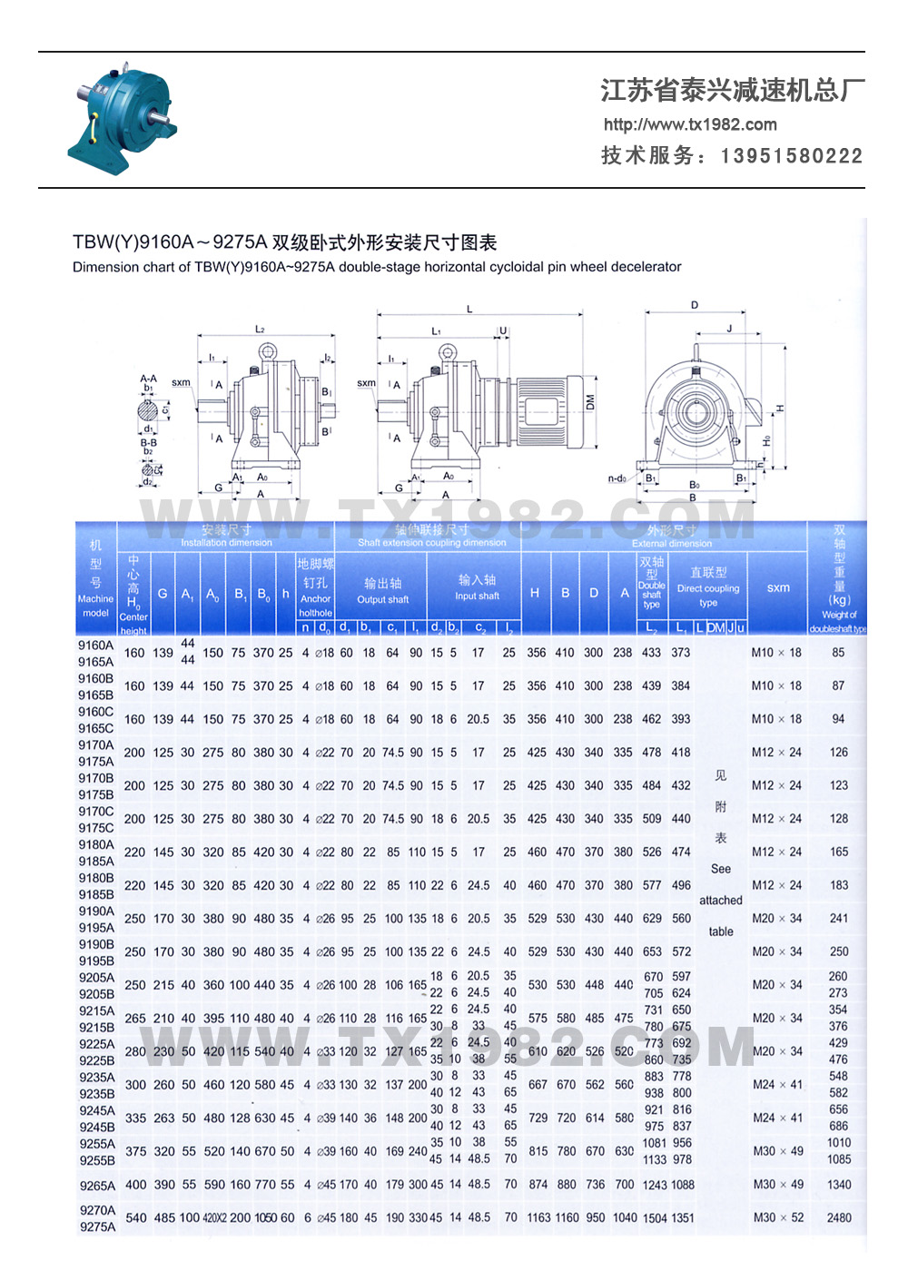 TBW擺線針輪減速機為雙軸型、腳板式臥式安裝