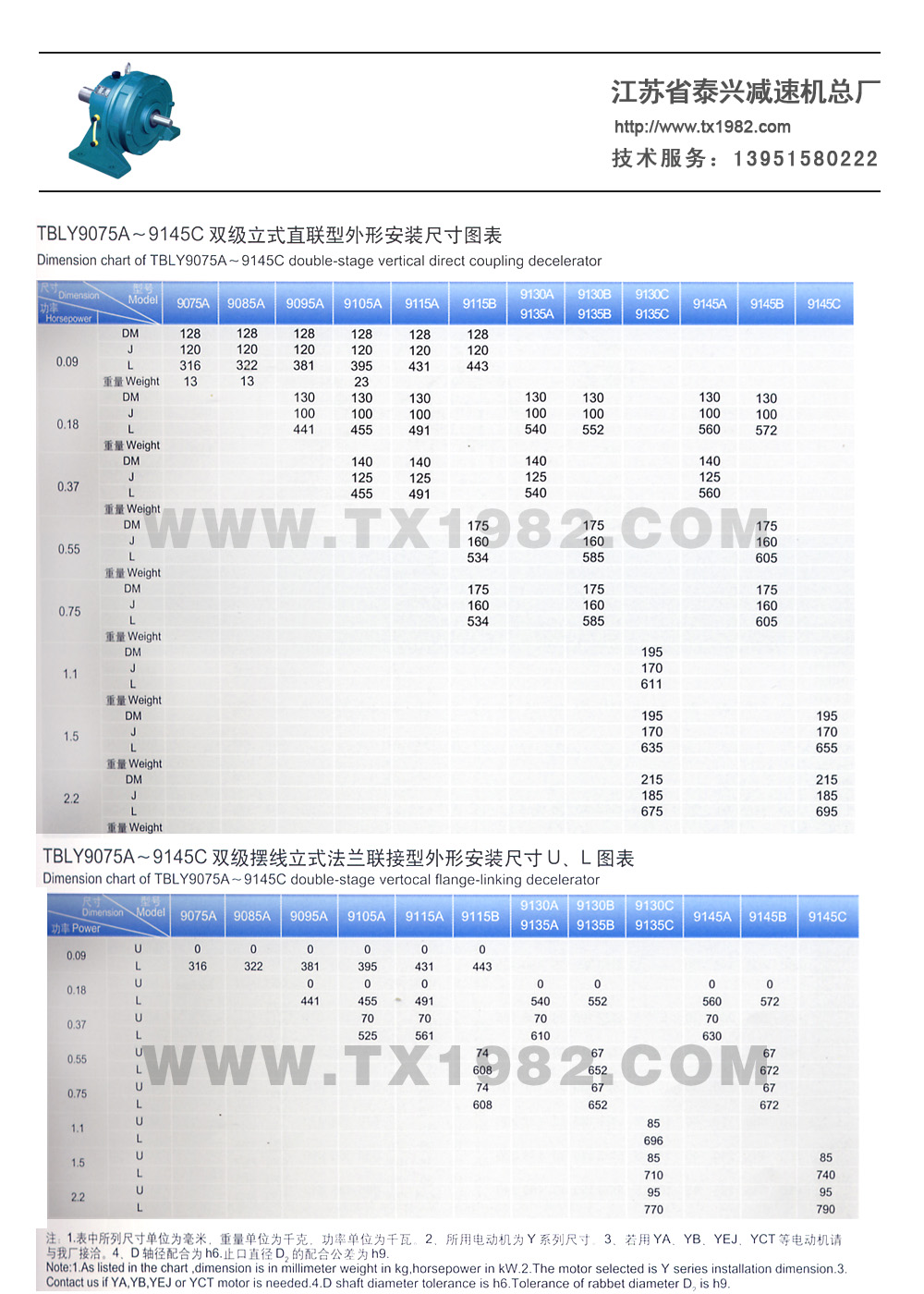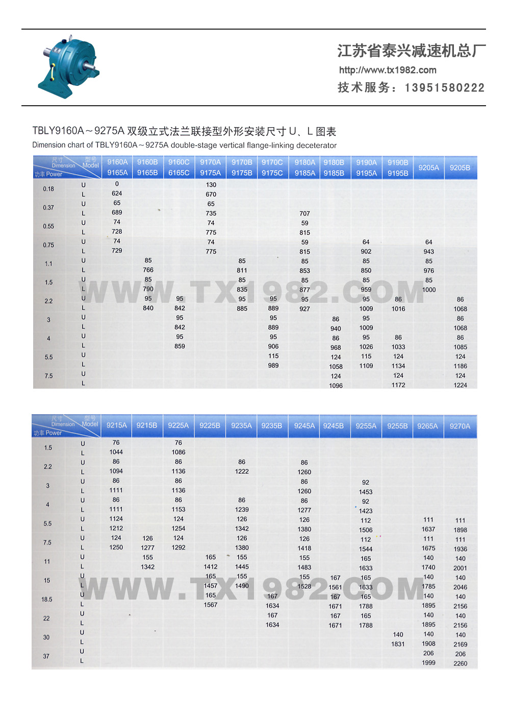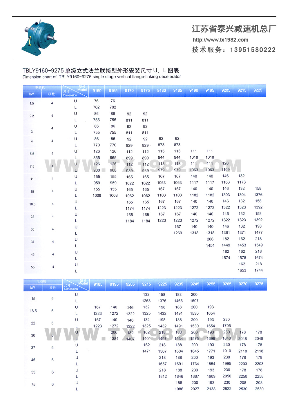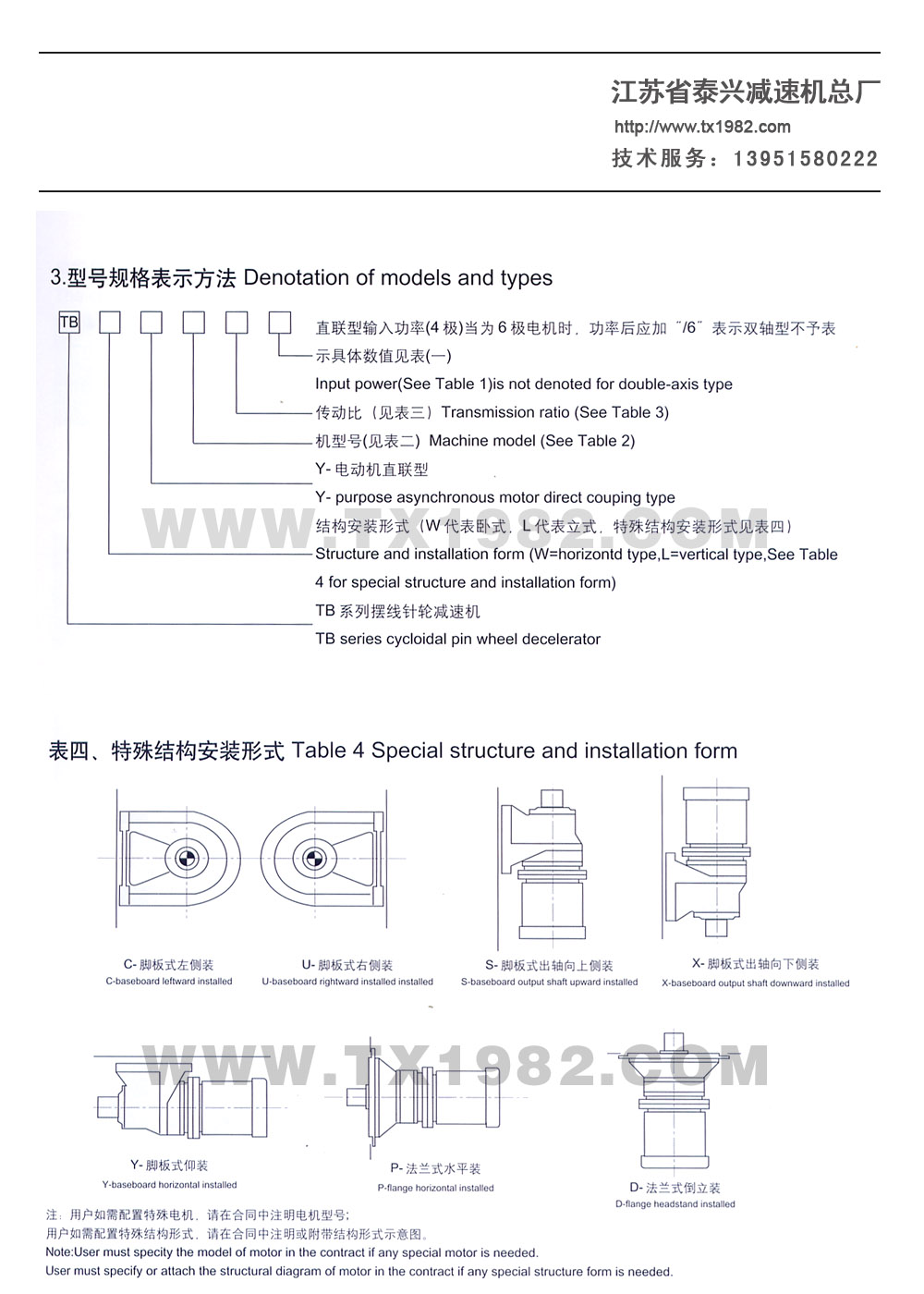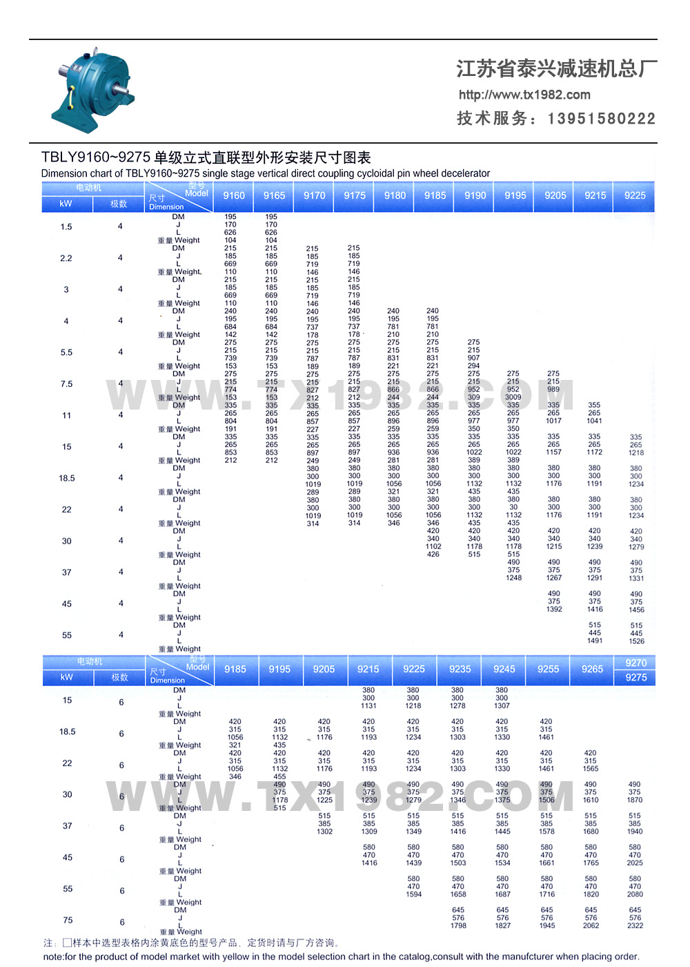 TBLY擺線針輪減速機為專用異步電機直聯(lián)型、法蘭式立式安裝
